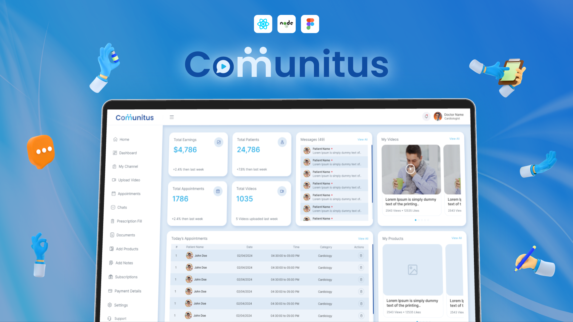 React.js, Node.js, UIUX
